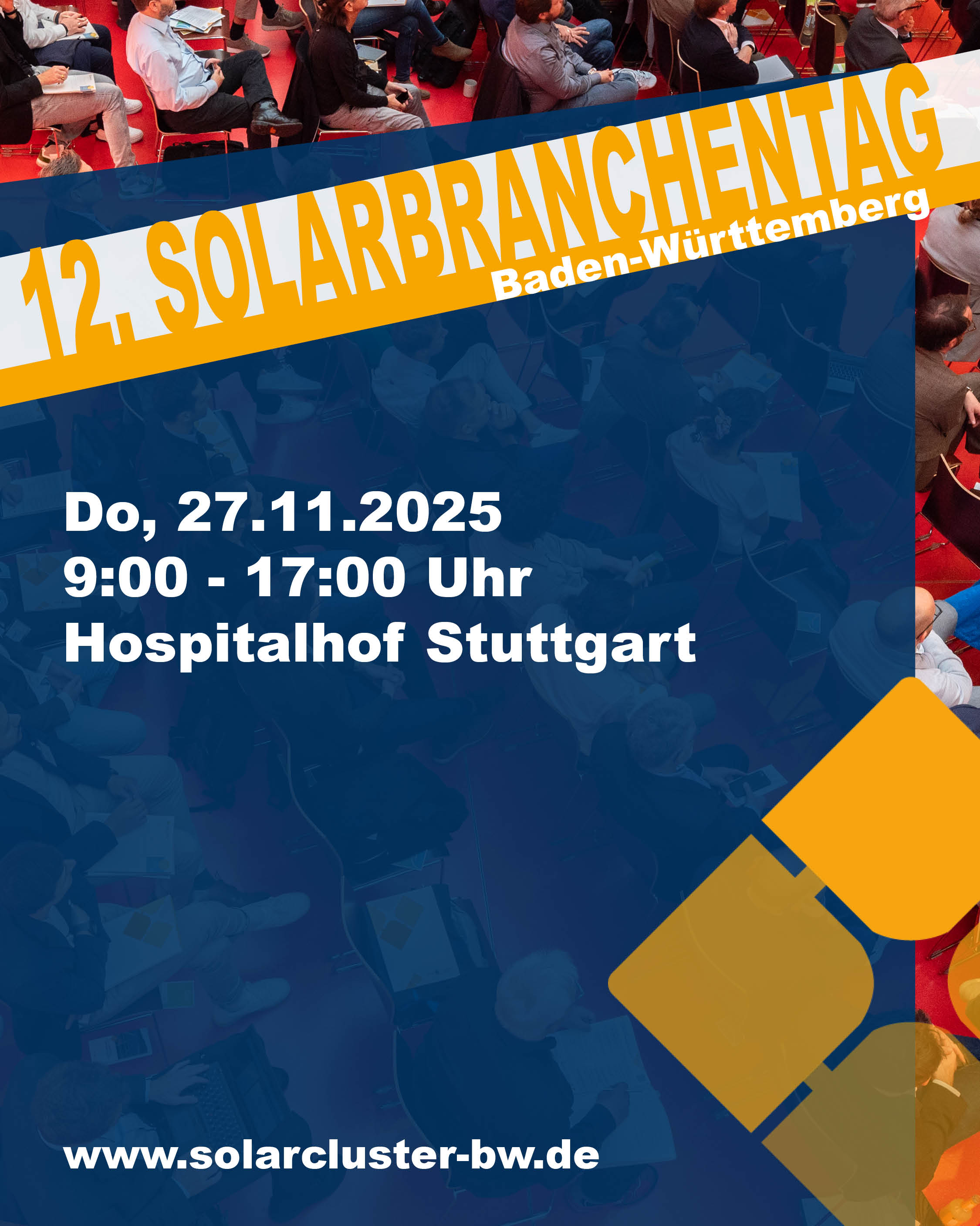 Hier finden Sie eine Auswahl an Texten, Grafiken und Bildoptionen für Ihre Veröffentlichung zum Solarbranchentag Baden-Württemberg 2025. Wir freuen uns, wenn Sie sich hier bedienen und uns bei der Bewerbung unseres Events unterstützen.